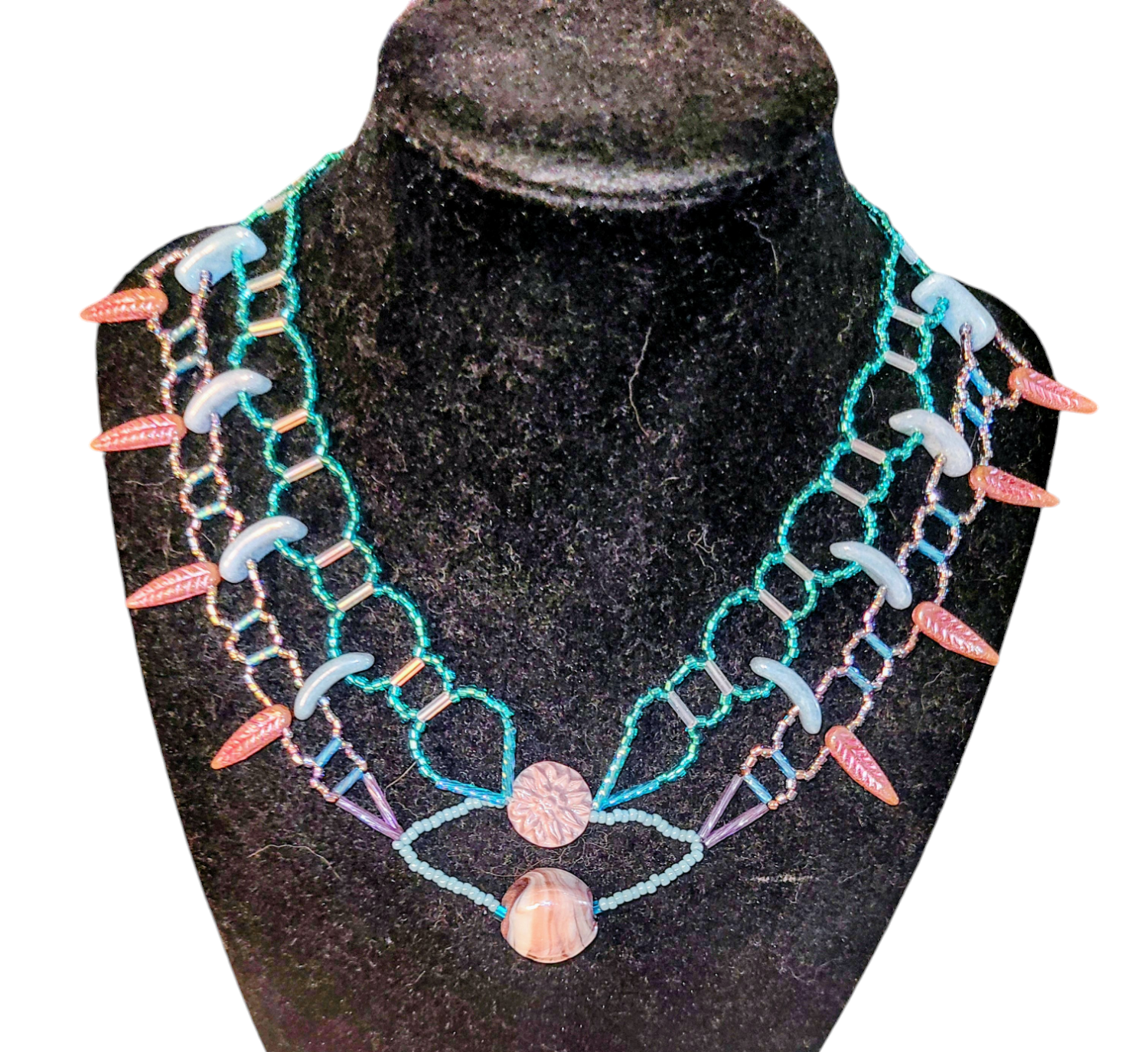 Aqua and Lilac Glass Bead Burnished Collar Necklace