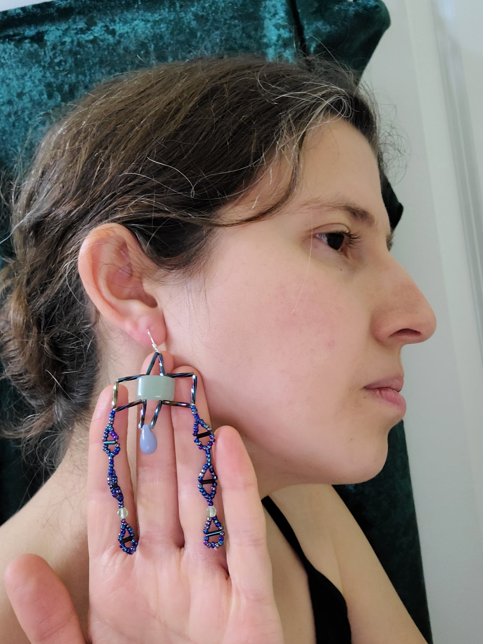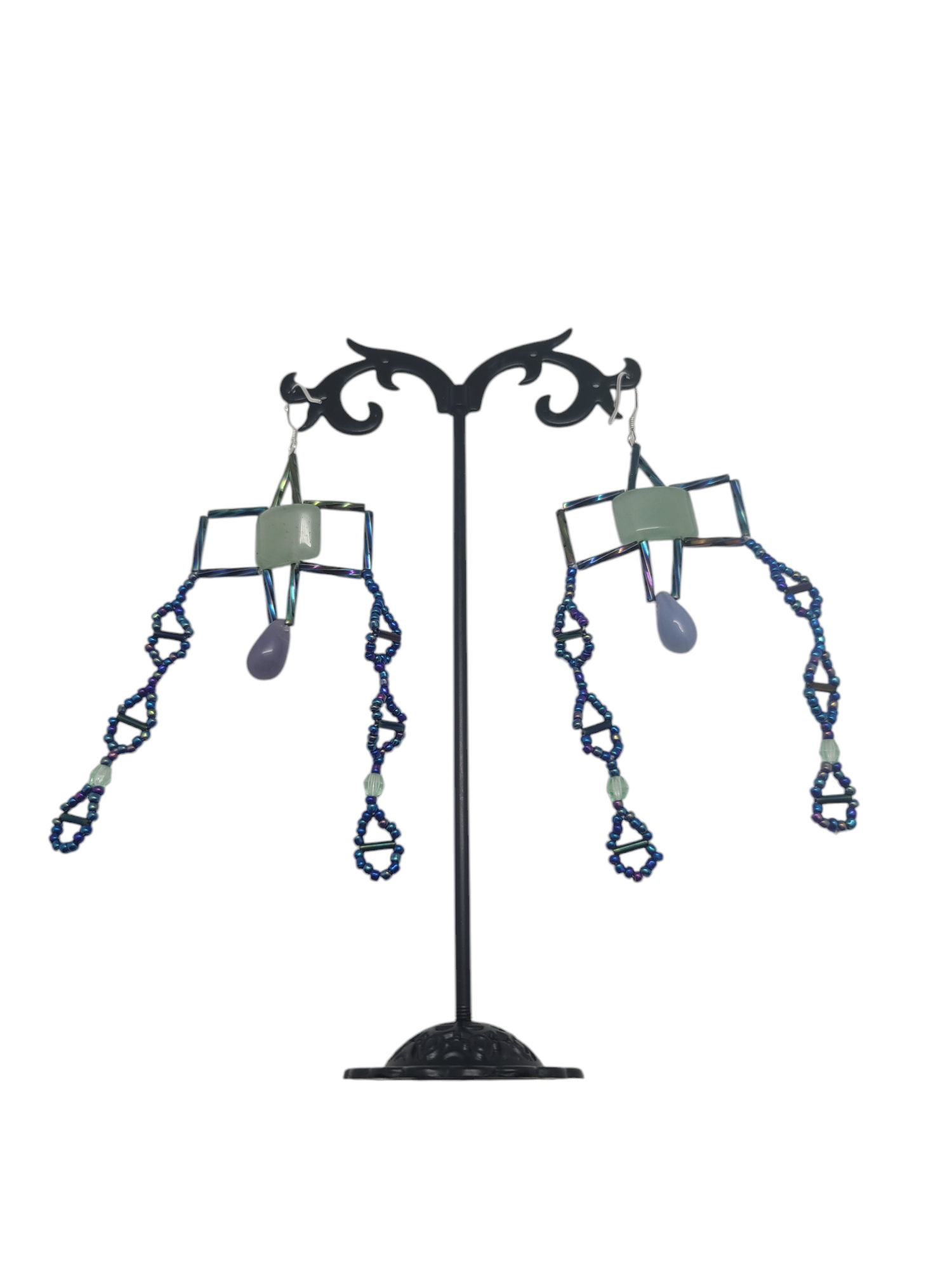 These Aventurine earrings feature a soft, earthy green stone framed in a bold geometric square. The polished aventurine stones bring subtle texture, while cascading strands of deep blue beads add contrast and movement. The Byzantine cross-inspired design strikes a balance between structure and elegance, making these earrings a versatile choice for any wardrobe. Pair them with a crisp white blouse for a polished daytime look or a flowing maxi skirt for an artistic evening vibe. Perfect for cultural festivals, casual dinner dates, or creative gatherings.