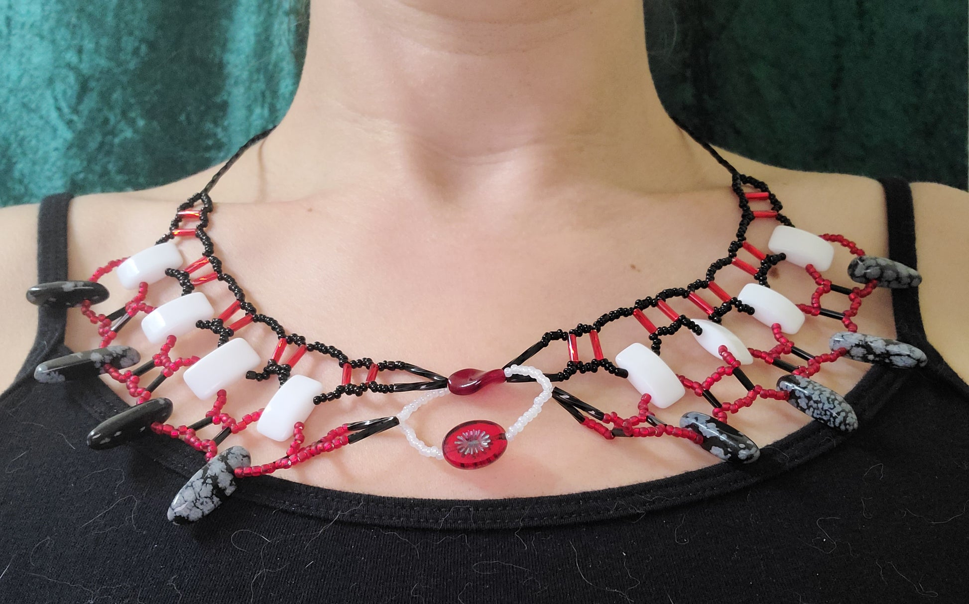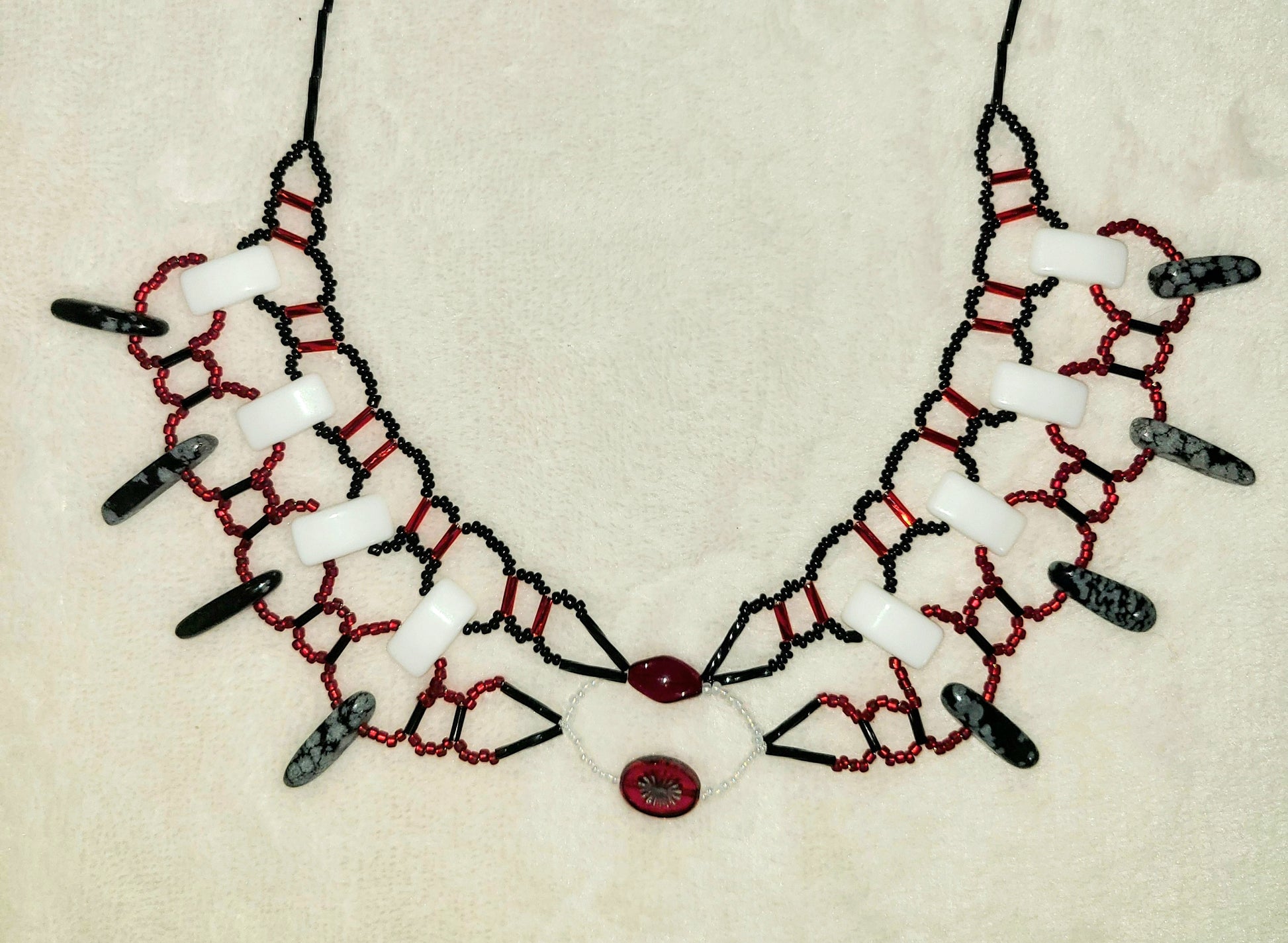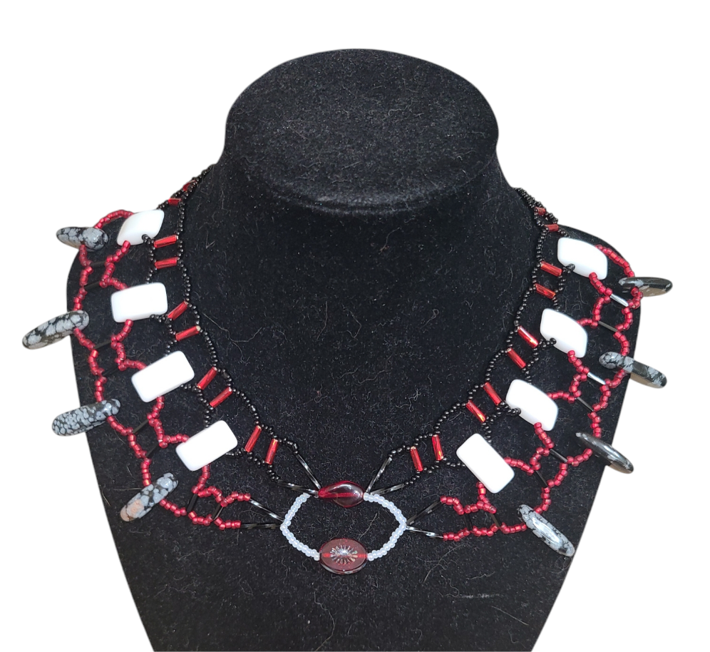 Red and Black Snowflake Obsidian Burnished Collar Necklace