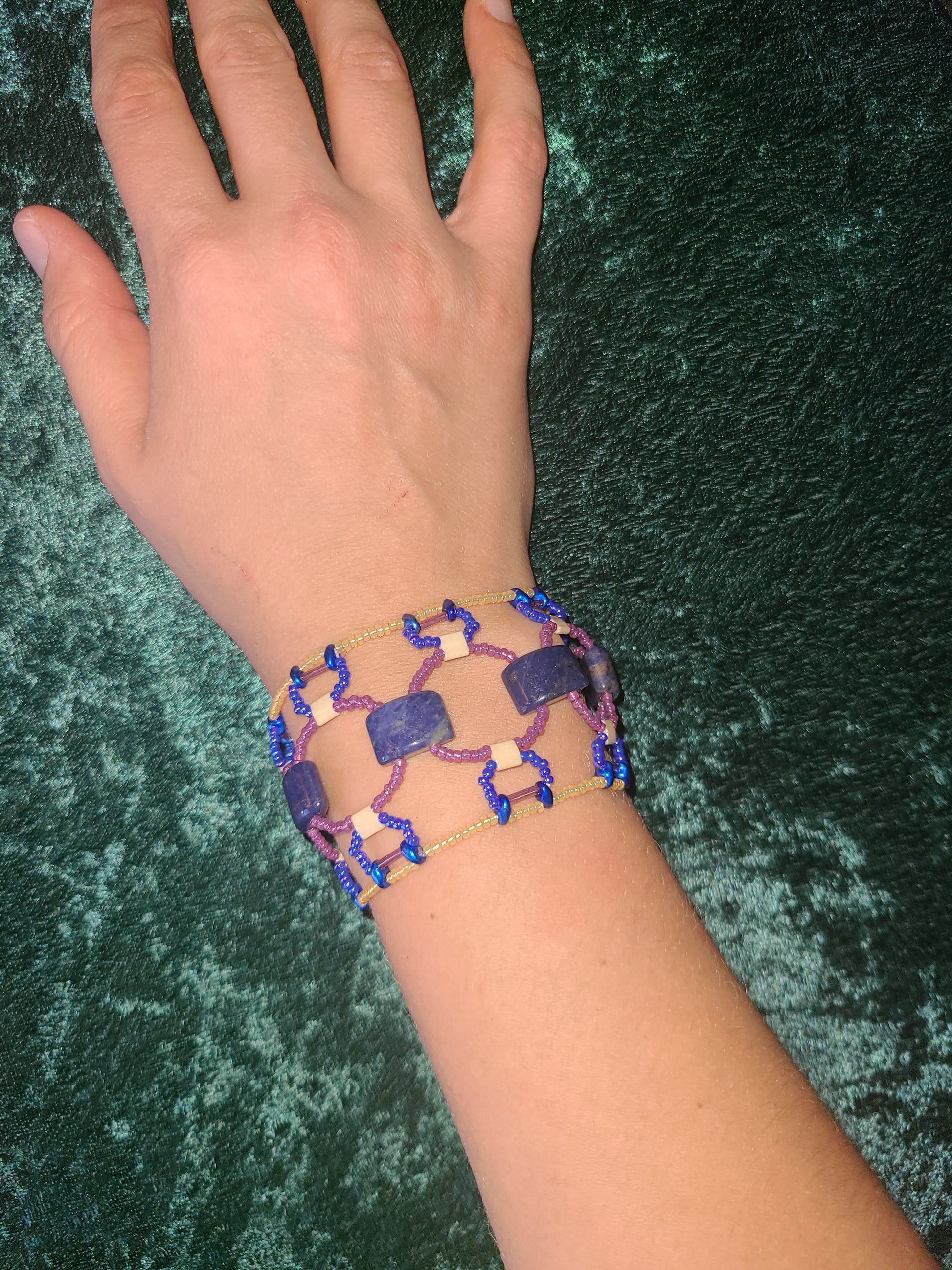 Bright, bold, and playful, this bracelet is an eye-catching accessory that celebrates artistic design. The deep blue sodalite stones are offset by vibrant gold and pink accents, creating a color story that feels fresh and modern. Ideal for adding personality to a casual weekend outfit or for injecting color into your workwear, this bracelet is a versatile favorite for women who love to express their individuality.